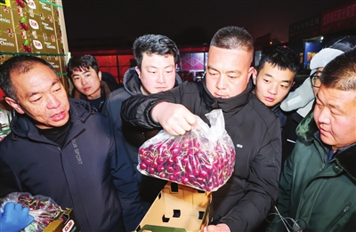 “太漂亮了,这是我今年见过最好的车厘子了,这一趟没白来!”开箱后,来自河北唐山的采购商史采言连连感叹。他从事水果批发已经13年了,在唐山经营着一家精品水果的批发店,其下游客户主要是位于唐山的商超、水果店、电商平台等。目前该店的线下客户约占八成。“我1月16日晚上11:00从唐山出发,凌晨2:00就到市场了。我这次订了8吨货,其中一多半已经预售出去了,剩下的用不了多长时间就都卖了。”他表示,去年,他的水果批发店销量约100吨。