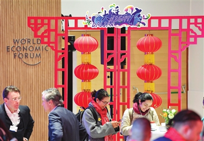 1月16日,在瑞士达沃斯,与会者参加“大连之夜”招待会。 新华社发