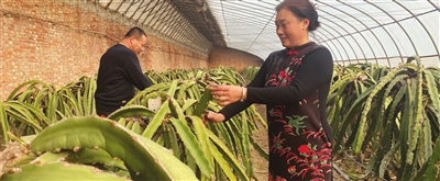 走进暖棚,田姐正忙着给火龙果树修剪枝杈,最后一批果实已在上个月采摘完成。“它们算是刚生产完,正‘坐月子’呢,得小心侍候着。”田姐打趣地说。
