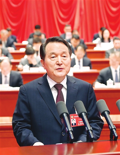市政协主席王常松代表政协天津市第十五届委员会常务委员会作工作报告。