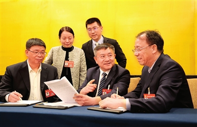 图为委员们讨论市政协常委会工作报告和提案工作情况报告。