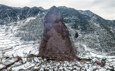 1月22日在镇雄县塘房镇凉水村拍摄的山体滑坡灾害现场(无人机照片)。新华社发