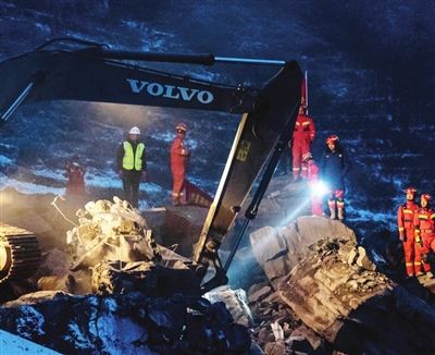 1月22日在镇雄县塘房镇凉水村拍摄的救援现场。新华社发