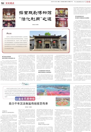 汉沽盐场盐业文化旅游公司运营管理部部长董洪岩介绍:“为更好地呈现汉沽传统制盐工艺,本着‘以文塑旅·以旅彰文’的指导原则,2023年,天津盐业风情游览区不仅完成了相关基础设施建设,而且强化了景区景点建设。下一步,作为首批天津市级非物质文化遗产传承体验基地,我们将开展非遗传承系列活动,依托千年古场的生产工艺、生态环境、生活方式、生命奇迹发展模式,策划相关主题活动,讲好天津故事,讲好滨海故事,讲好汉沽故事,讲好汉沽盐场昨天、今天、明天的发展故事。我们将结合国内比较成功的非遗传承实践案例,积极促成‘非遗进校园、非遗进社区、非遗进企业’等工作开展,以市场需求为导向,制作非遗传承课程等,更好地将非遗传承融入基础教育,培养更多的非遗传承人,将非遗资源转化为带有地域元素的课程和产品。此外,我们还计划大力挖掘盐民游击队红色资源,积极筹建‘盐民支队故事馆’‘百里盐田生态科普体验馆’,打造红色旅游。让更多的市民朋友通过特色非遗文旅体验,感知盐从哪儿来,感受到海盐不仅仅是静态的,还有翻身、碰撞、结晶、微笑的动态过程。”