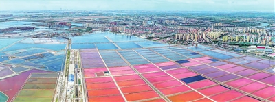 每年5月到10月间,七彩盐田195块结晶池的壮美,震撼着来到这里的每一位游客,万顷纵横的盐池在阳光照射下,蓝、黄、红排列渐变,宛如一个眼影盘。在“八卦滩”文化广场,木锨、大筐、盐杠等沿用千年的集盐工具,运盐用的无动力艚船,上世纪五十年代开始使用的轧池机,上世纪六十年代开始使用的拖轮,上世纪八十年代开始使用的小型收盐机……这些工具虽然退出了生产舞台,却在文旅舞台二次登场,向游客讲述历史长河中的一个个与盐有关的故事。在古法制盐体验馆,游人不仅能够直观地了解到纳潮、初级制卤、中级制卤、高级制卤、结晶、采收等古法制盐流程,还能亲自动手尝试制盐——拿着工具在蒸发池中来回反复搅拌海水,让盐粒结晶,之后几人合力把盐堆到一起,并以竹筐捞出,完成盐的采收。