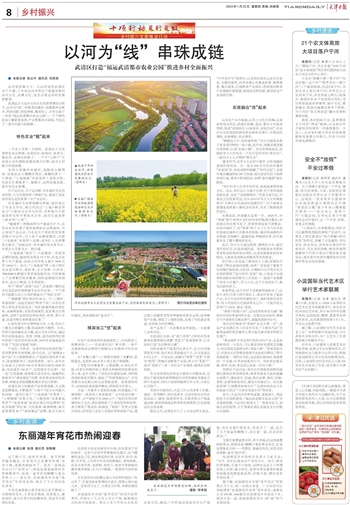 武清区以大运河文化生态发展带建设为抓手,以河为“线”,串联周边镇街,创建集种业振兴、科技创新、特色种植、精深加工、乡村文旅于一体的“福运武清都市农业公园”,一个个特色农业小镇紧紧抱团,产业聚集串点成线,开拓出了一条乡村振兴的新路。