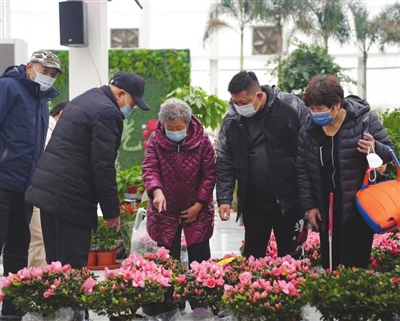 正在选花的市民魏云波大爷乐呵呵地说:“快过年了,买盆花给家里增添点喜庆,看着心情也倍儿好。这里花可全了,又便宜又好看,我都快挑花眼了。”