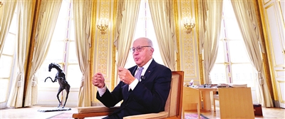 在中法建交60周年之际,法比尤斯日前在位于巴黎的宪法委员会主席办公室里,接受新华社记者独家专访。他幽默地说:“我被称作中国人民的‘老朋友’。年龄上,我不认为自己‘老’,但的确是‘朋友’。”