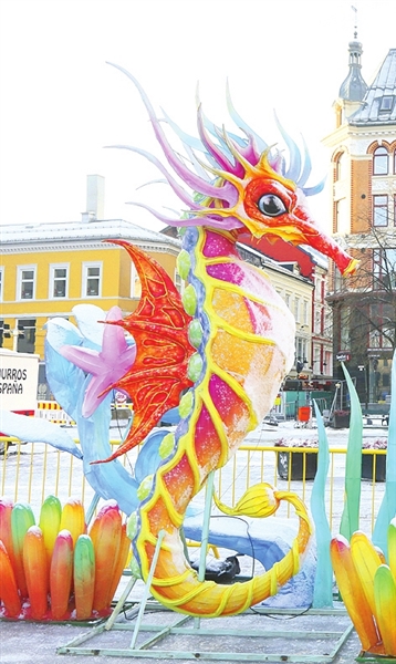 据新华社奥斯陆1月28日电(记者 张玉亮)“你好!中国”冰雕彩灯艺术展28日在挪威首都奥斯陆开幕。由哈尔滨冰雕艺术家来挪威制作的冰雕作品和来自四川自贡的彩灯吸引了众多当地民众前来欣赏。