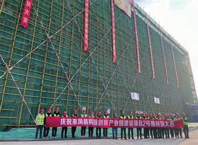 1月27日,由中铁十八局四公司承建的来凤县科技创新产业园建设项目首栋单体建筑物封顶,标志着项目如期完成阶段性建设任务,向打造优质高效工程迈出坚实一步。