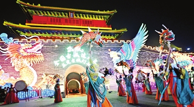 直径6米的大鼓上,舞动的狮子象征着盛世繁华和喜悦;福袋牡丹、福娃贺岁将年味儿烘托得淋漓尽致;鲤鱼跃龙门、龙凤呈祥彩灯寄托了人们对新春美好的期盼;用彩灯模拟的蔬菜摊上,可以随手把玩的“瓜果蔬菜”皆是灯盏,诠释古城的烟火气……天津游客王晓娜说:“我刚拍完了咱们西青杨柳青的花灯,又特地来正定。站在古城墙上看花灯,有一种穿越的感觉,看到了正定的特色,别有韵味。”