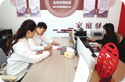 据了解,试运行期间,该婚姻登记处可预约办理婚姻登记、补发婚姻证等。工作时间为每周二、周五的9:00至12:00、14:00至17:00。结婚登记高峰日(5月20日、七夕节等)以北辰区民政局公告为准。
