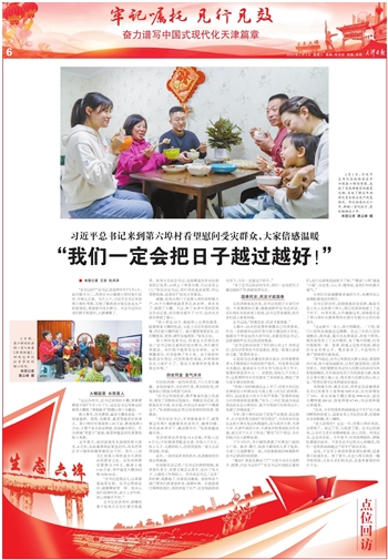 “总书记好!”“总书记,给您拜早年!”2月1日,农历腊月廿二,西青区辛口镇第六埠村张灯结彩,年味儿正浓。当天上午,习近平总书记来到第六埠村考察,实地了解洪涝灾害后农业生产恢复情况,看望慰问受灾群众。当总书记向乡亲们挥手致意时,人群沸腾了。