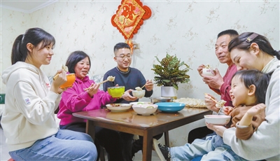 2月1日,习近平总书记来到西青区辛口镇第六埠村考察,走进了菜农郝健家的蔬菜大棚,实地了解去年洪涝灾害后农业生产恢复情况。昨天恰逢北方小年,郝健一家吃饺子,其乐融融过小年。 本报记者 潘立峰 摄