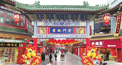 天津古文化街挂满大红灯笼,年味儿扑面而来。 本报记者 胡凌云 摄