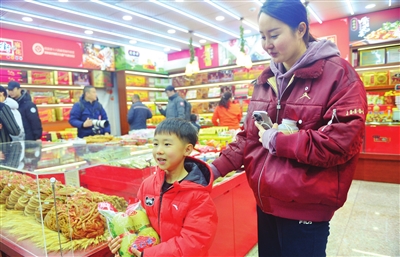 小年将至,天津古文化街上人头攒动,不少人全家一起来到这里挑选年货。