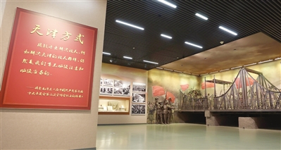 在党的七届二中全会上,毛泽东主席将平津战役中天津战役的胜利概括为“天津方式”,即“用战斗去解决敌人,例如解决天津的敌人那样,仍然是我们首先必须注意和必须准备的。”图为平津战役纪念馆展厅介绍“天津方式”。 本报记者 孙立伟 钱进 摄