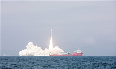 图为2月3日11时06分,我国太原卫星发射中心在广东阳江附近海域使用捷龙三号运载火箭,成功将DRO-L星、智星二号A星、东方慧眼高分01星、威海壹号01-02星、星时代-18-20星以及NEXSAT-1星等9颗卫星发射升空,卫星顺利进入预定轨道,发射任务获得圆满成功。 新华社发