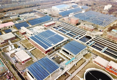 近日,北仓污水处理厂分布式光伏发电项目实现全容量并网发电。该项目装机容量4.1兆瓦,年发电量420万度,预计每年可减排二氧化碳3697吨。 本报记者 胡萌伟 张磊 摄影报道