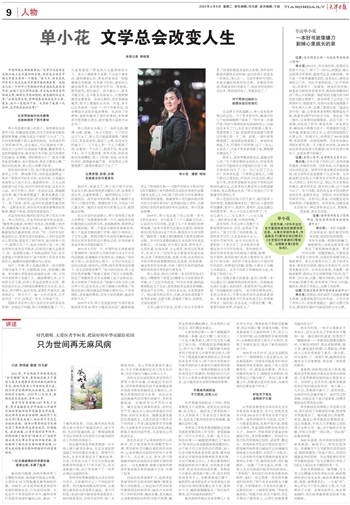 读书写作,不仅让单小花整个人都变得更加阳光、自信,还带动了身边的人。“孩子们受了我的影响,也喜欢读书写作,尤其是我的大女儿,从初中开始写作,如今写出的作品累积到二十多万字了,在学校多次获得过读书与写作的奖状。那些曾经不看好我的邻居也向我挑起大拇指,称赞我不简单,找我给他们的孩子推荐好书,指导孩子们写文章。我们村子里也有好几个爱好写作的农民,我帮他们改稿、投稿,大家在文学路上共同成长。文学不仅给了我精神的力量,也改变了我的人生。”