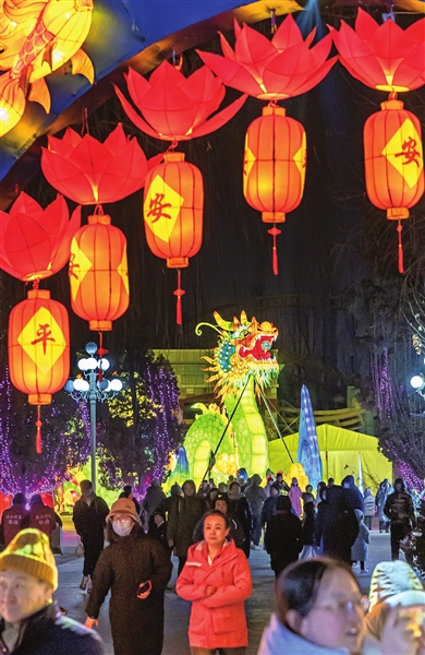 津南区“小站迎新”第二届新春艺术灯会170余件花灯,分为龙年大吉、互动花卉、魔幻森林等6个主题,造型精美、色彩鲜艳,新春气息扑面而来。