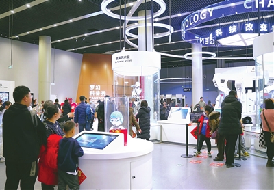 春节期间,滨海科技馆举办游园会,集合传统市集、民俗游戏、科学展项讲解、实验秀等诸多内容,吸引众多游客前来。