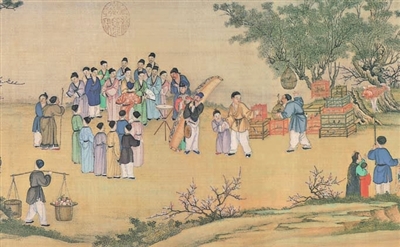 有的画未必是画史上的主流,却承载着大量社会历史信息,为人们掀开中国古代特定岁时、特定风俗的鲜活一角。如《明宪宗元宵行乐图》还原了明代宫廷欢度元宵佳节的盛景,清代宫廷画师徐扬的《端阳故事图册》以册页形式描绘清代端午时节的民间风俗。有的画找不到对应的现实场景,却以气韵为不同时节留下独特的印记,如隋代画家展子虔的《游春图》定格了大好河山盎然勃发的春日气息,南宋画家赵伯驹《江山秋色图》将秋天的山色变化演绎成富于节奏的交响乐。有的画聚焦四季“限定版”的物象,以小见大,激起人们对于某个特定时节的向往,如清代画家恽寿平笔下春日的桃花灼灼、任伯年笔下秋日的醉蟹与菊花。有的画俨然将镜头推向时光流转之下的人,不经意间洋溢着老祖宗们在日常生活里的智慧与诗意,如宋代佚名画家笔下夏日的莲塘泛舟,《胤禛行乐图册》中冬日的围炉观书。无论画面的写实程度如何、与社会历史的匹配度如何,它们都无法脱离现实世界而独立存在。写生亦是中国绘画自古以来的传统,有荆浩之《笔记法》、黄公望之《写山水诀》为证。