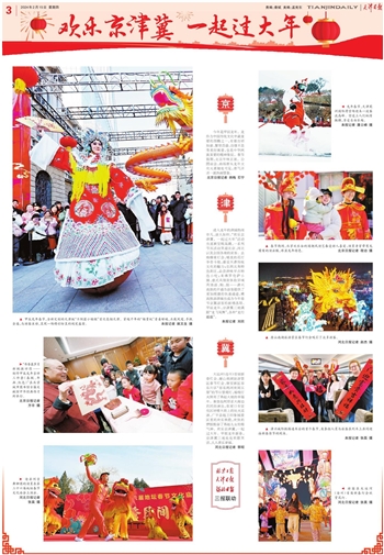 进入龙年的津城热闹非凡,游人如织。“欢乐京津冀, 一起过大年”活动也逐渐呈现高潮,一系列节庆活动笑迎北京、河北以及全国各地的宾客。去杨柳青灯会,精美的花灯争奇斗艳,感受天津传统文化的魅力;在西北角特色街区,品尝津味早点特色小吃;来佛罗伦萨小镇、意式风情街体验异域风情游、购、娱……津兴高铁的开通为游客提供了更加便捷的快速通道,乘高铁游津城也成为今年春节京冀游客的新增选项。甲辰龙年,京津冀三地满眼“龙飞凤舞”,各种“龙行龘龘”。
