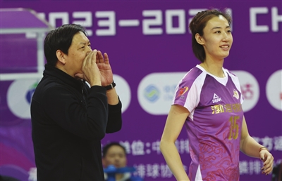 女排决赛,王宝泉教练为场上球员鼓劲。