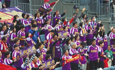 球迷为天津女排加油助威。