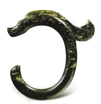 红山文化玉龙由墨绿色的岫岩玉雕琢而成,高26厘米,完整无缺,躯体卷曲若钩,呈“C”字形,仿佛瞬间就要腾空而起。头部刻画生动,简洁圆润,吻部前伸,略向上弯曲,嘴紧闭,有对称的双鼻孔,双眼突起呈棱形。自头部向后颈背长鬣飘逸,向上卷扬,使玉龙的身形有了变化,神气生动,边缘呈刃状。龙身大部光素无纹,无肢无爪,无角无鳞,躯体似蛇,遒劲有力。只在额及额底刻以细密的方格网状纹,网格突起作规整的小菱形。通体琢磨,光洁温润,造型独特,工艺精湛。这件器物涵盖了玉器圆雕工艺切、磨、碾、轧、打孔、勾线等方法和工序,有着圆雕技艺的基本技术表现。该件体大,造型生动,雕琢精美,具有相当高的艺术价值。关于其用途尚无定论,龙背有对称的孔可悬挂,显然并非配饰之物,专家推测大概是一种作为宗教图腾象征或是用于祭祀的礼器。