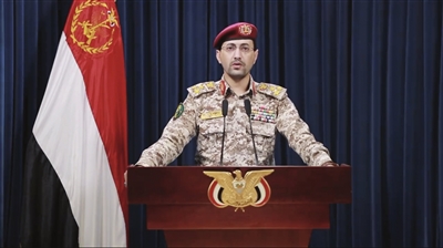 也门胡塞武装发言人叶海亚·萨雷亚19日说,胡塞武装对在亚丁湾航行的一艘英国货轮实施了导弹打击,并成功击中目标。这张2月19日的视频截图显示,也门胡塞武装发言人叶海亚·萨雷亚在萨那发表声明。 新华社发