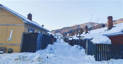 从教堂山坡上下来,走进街道,道路被积雪深深覆盖着,道路两边更是堆着高高的积雪,有的接近窗户,有的则几乎抵达屋顶。小路上几乎没有行人,偶尔有一两只狗在跑动。这大概也是《城堡》主人公K在附属于城堡的村子里穿行的感觉:“K此时在村里踏雪前进,并不比昨天在大路上省力。这里的积雪一直堆到与那些简陋小屋的窗户齐高,稍往上一点,低矮的屋顶上也沉甸甸地堆满了雪,而山上的那些建筑物,却都那么自由自在、轻松愉快地挺立着,至少从这里看上去的印象是如此吧。”如果想体验《城堡》里主人公踏雪前行的感觉,建议在冬日来横道河子镇一游。