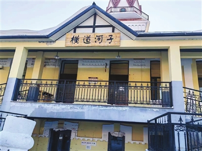 这就是横道河子东正教圣母进堂教堂。该教堂建于1905年,其规模仅次于哈尔滨圣·尼古拉大教堂。这是我国现存的唯一一处木制东正教堂原址。顺着高高的台阶拾级而上,眼前就是耸立的教堂。教堂背后是白雪覆盖着的山峦,山上的林木依稀可辨,树枝上已没有积雪。该教堂曾一度热闹非凡,这里能够容纳500名信徒进行宗教活动,如今这里成为中东铁路博物馆,大厅里恢复了教堂早年的模样,供游人参观。横道河子镇名来源于横道河子河名,河上有4座桥,其中两座修建于上个世纪70年代。站在桥上遥望教堂的感觉,似乎就有K站在木桥上遥望城堡的感觉。