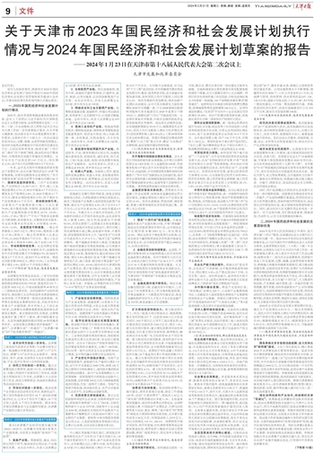 ——2024年1月23日在天津市第十八届人民代表大会第二次会议上 2024年02月21日  天津市发展和改革委员会