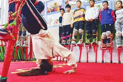 一招一式都体现了孩子们对于踩高跷的热爱。