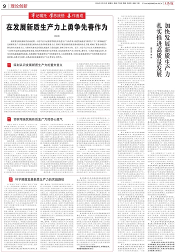 习近平总书记在主持中央政治局第十一次集体学习时强调要加快发展新质生产力,扎实推进高质量发展。这一论断的提出凸显了应对新一轮科技革命及我国经济发展方式转型的全局视野,是全面贯彻新发展理念,加快建设现代化经济体系、推进高水平科技自立自强、加快构建新发展格局、统筹推进深层次改革和高水平开放、统筹高质量发展和高水平安全等战略任务的重要举措,也为新时代推进实现高质量发展提供了新的理论指导。