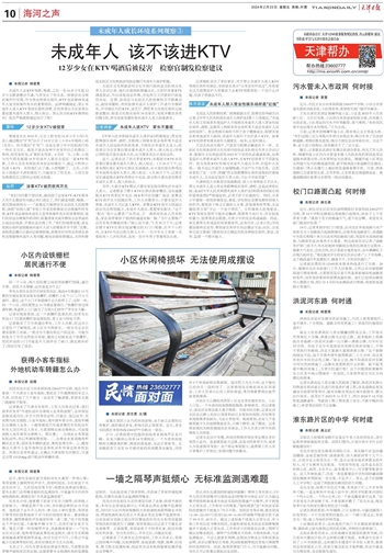另外,大部分KTV默认只要有家长陪同便允许未成年人进入。记者联系了缪卡KTV红桥区陆家嘴店、宝乐迪量贩式KTV西青区中北店、纯K和平区恒隆广场店、星聚会KTV南开区大悦城店等,工作人员都表示,只要有监护人带着,未成年人可以进入KTV。星聚会KTV南开大悦城店的店员还特别提示,未成年人进店,需要家长配合。“这个‘配合’是什么意思?”店员说,万一遇到有执法人员来检查,家长需带着孩子到消防通道处躲一躲。“为什么要躲?”店员有些含糊地回答:“担心说不清。”1月26日下午,记者在缪卡KTV红桥区陆家嘴店的大门口观察,在半个小时内,从KTV内走出的几拨儿人中,一位中年女士带着一名看起来十几岁的男孩,还有一名中年男子带着两名女孩。