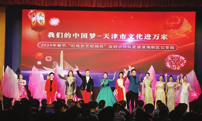 本报讯(记者 刘莉莉)昨日,滨海新区公安局报告厅内一片欢歌笑语,“我们的中国梦——天津市文化进万家”红色文艺轻骑兵友好小分队走进滨海新区公安局活动在此举行。在元宵佳节即将到来之际,津门文艺工作者以精彩节目向滨海新区公安局民辅警及家属送上祝福与敬意。