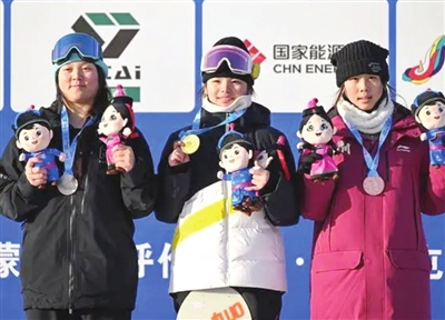 本报呼伦贝尔电(记者 张璐璐)昨天,第十四届全国冬季运动会单板滑雪项目在呼伦贝尔市扎兰屯金龙山滑雪场展开各项目争夺。在公开组女子大跳台决赛中,天津与广西联合培养的运动员甘佳佳(上图中)成功夺冠。天津体育代表团也由此斩获本届赛事的第7枚金牌。