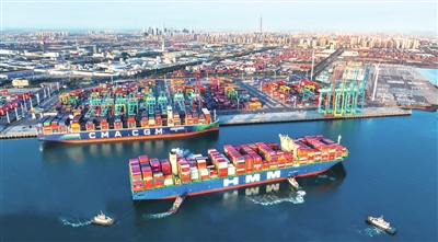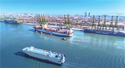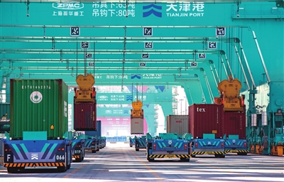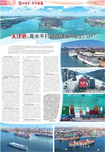 高水平打造京津冀“海上门户”。京津冀是引领全国高质量发展的三大重要动力源之一,天津港作为京津冀“海上门户”,发挥着日益重要的作用。加力陆海双向通道建设,积极服务“大循环”“双循环”保通保畅。紧密对接前端客户,运行至北京平谷、河北邢台、高邑等地海铁联运班列,开通至雄安新区“绿色通道”,为北京和雄安新区打造最佳出海口。与环渤海12家港口共同发布联合服务倡议,打造环渤海“天天班”“两点一航”服务。五年来,环渤海内支线舱位增长50%以上,有力带动京津冀及环渤海区域经济发展和贸易往来,有力提升区域发展活力。