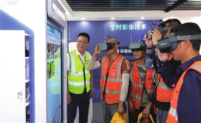 北方大数据中心VR安全教育体验站工人戴上VR设备沉浸式体验工伤预防