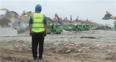 “快,挖掘机加速搅拌,运土车做好统筹,提升运输效率。”在满是水泥灰的现场,对讲机里传来的都是焦急的命令,时间紧、任务重,早一分钟完成任务,大堤就增加一道保险。127名突击队员、9台挖掘机、24小时连续奋战,困了就在现场的车里睡两三个小时。现场摄氏三十多度的高温下,每个人的衣服都是干了湿、湿了干。最终用时60小时,完成所有搅拌、转运工作,助力顺利完成河堤加固。
