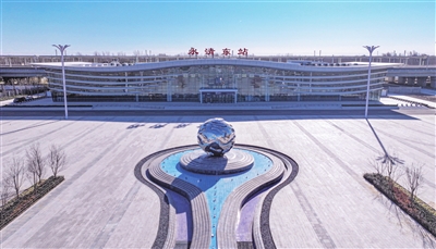 中铁建设承建的永清东站建筑立面寓意为“临空门户,展翅腾飞”