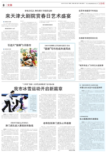 此外,展现沪疆两地三代人在不同时期携手共建美好家园的杂技剧《天山雪》将于3月15日在天津大剧院歌剧厅上演。3月29日,百老汇互动亲子科学剧《飞行秀》中文版将让孩子们在剧场里了解人类飞行史,感受有趣的飞行体验。
