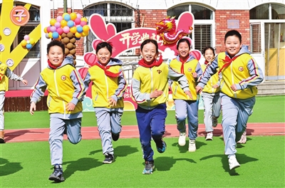 26日,天津市和平区中心小学以“五育龙鳞向阳生 传承创新卓然长”为主题举行2024年春季学期开学典礼,将昂扬向上的龙韵与传统文化的底蕴浸润于春日的校园。 本报记者 张磊 摄