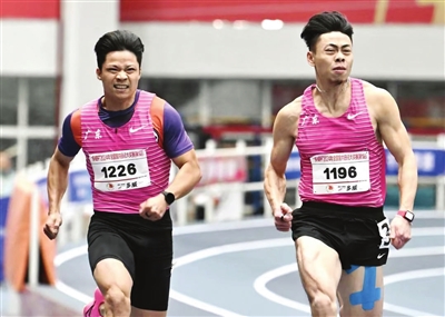 本报讯(记者 苏娅辉)2024年全国室内田径大奖赛(第1站)日前在成都市犀浦田径基地展开,这是苏炳添的复出首秀。在男子60米决赛中,苏炳添(图左)以6秒66摘得银牌,其广东队队友陈冠锋以6秒65夺冠。接下来,苏炳添将与陈冠峰等一起参加中国田径协会组织的4×100米接力测试。
