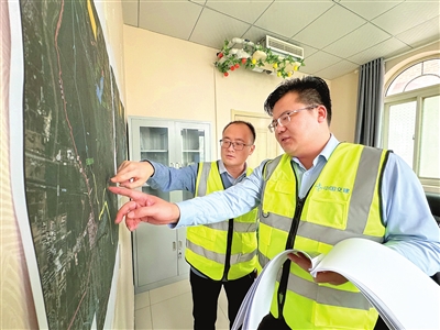 1月31日,刘太训(右)和同事正在研究施工方案。 天津日报记者 刘欣 摄