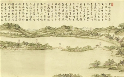 有些在画中见识过的知名景点,乾隆后来也真去过。比如杭州西湖。还是清朝的画家董邦达,他是浙江富阳人,绘制过不少关于西湖的画作。乾隆从董邦达的画中目睹了西湖美景,歆羡不已:“昔传西湖比西子,但闻其名知其美。”而且表示:“此图岂独五合妙,绝妙真教拔萃矣。”这么多关于西湖的画作,还是董邦达画得最好,算得上是出类拔萃了。最后决定:“明年春月驻翠华,亲印证之究所以。”光看画不过瘾啊,我一定要亲自去看看。