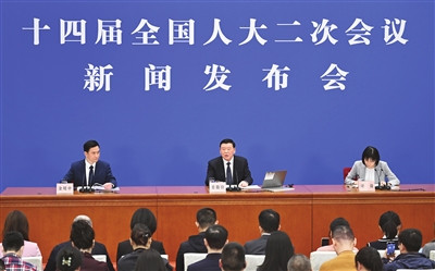 3月4日,十四届全国人大二次会议在北京人民大会堂举行新闻发布会。大会发言人娄勤俭就大会议程和人大工作相关问题回答中外记者的提问。 新华社记者 牟宇 摄